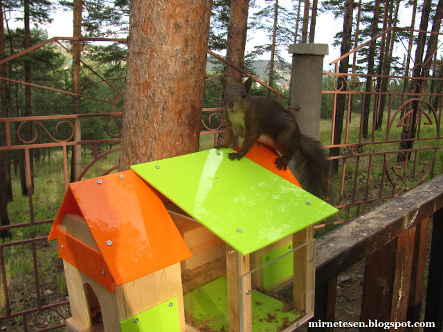 Т.к. тропа окружена сосновым лесом, есть шанс повстречать белку. Для них на поручнях стоят кормушки, можно приносить орехи.